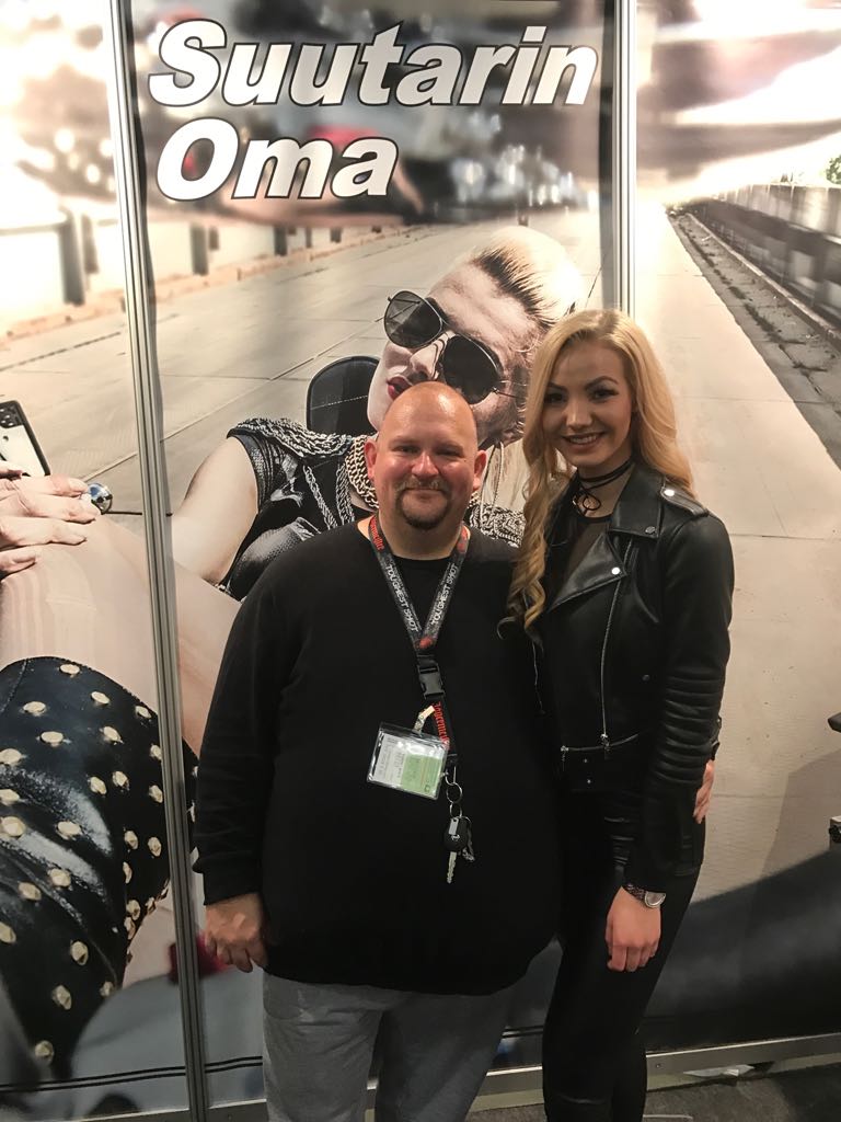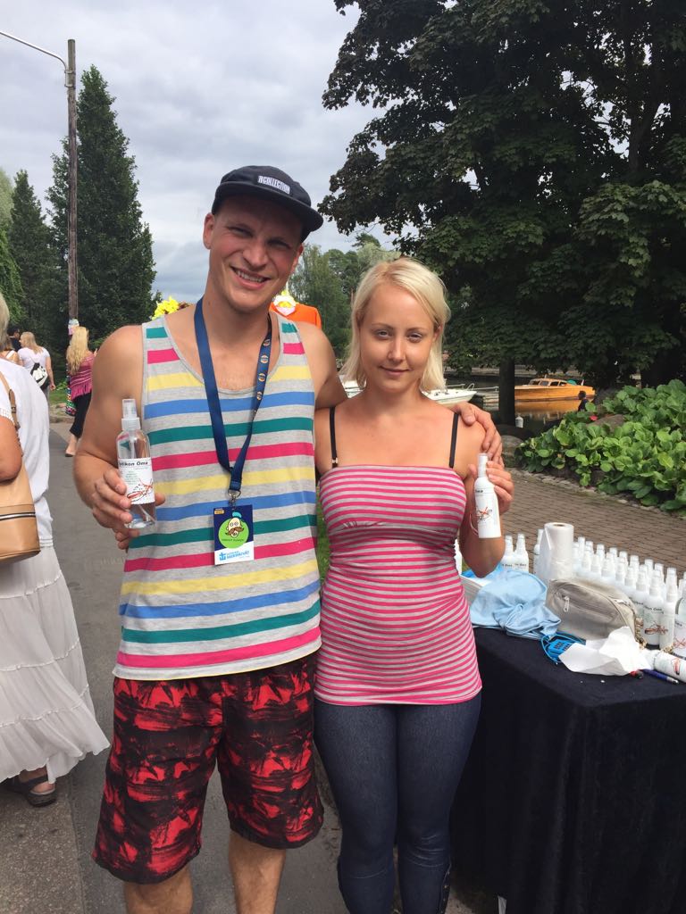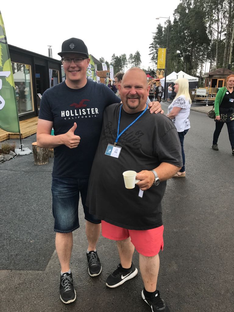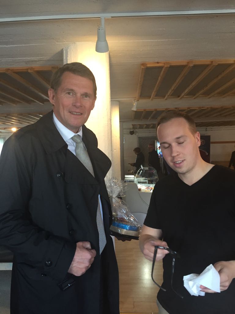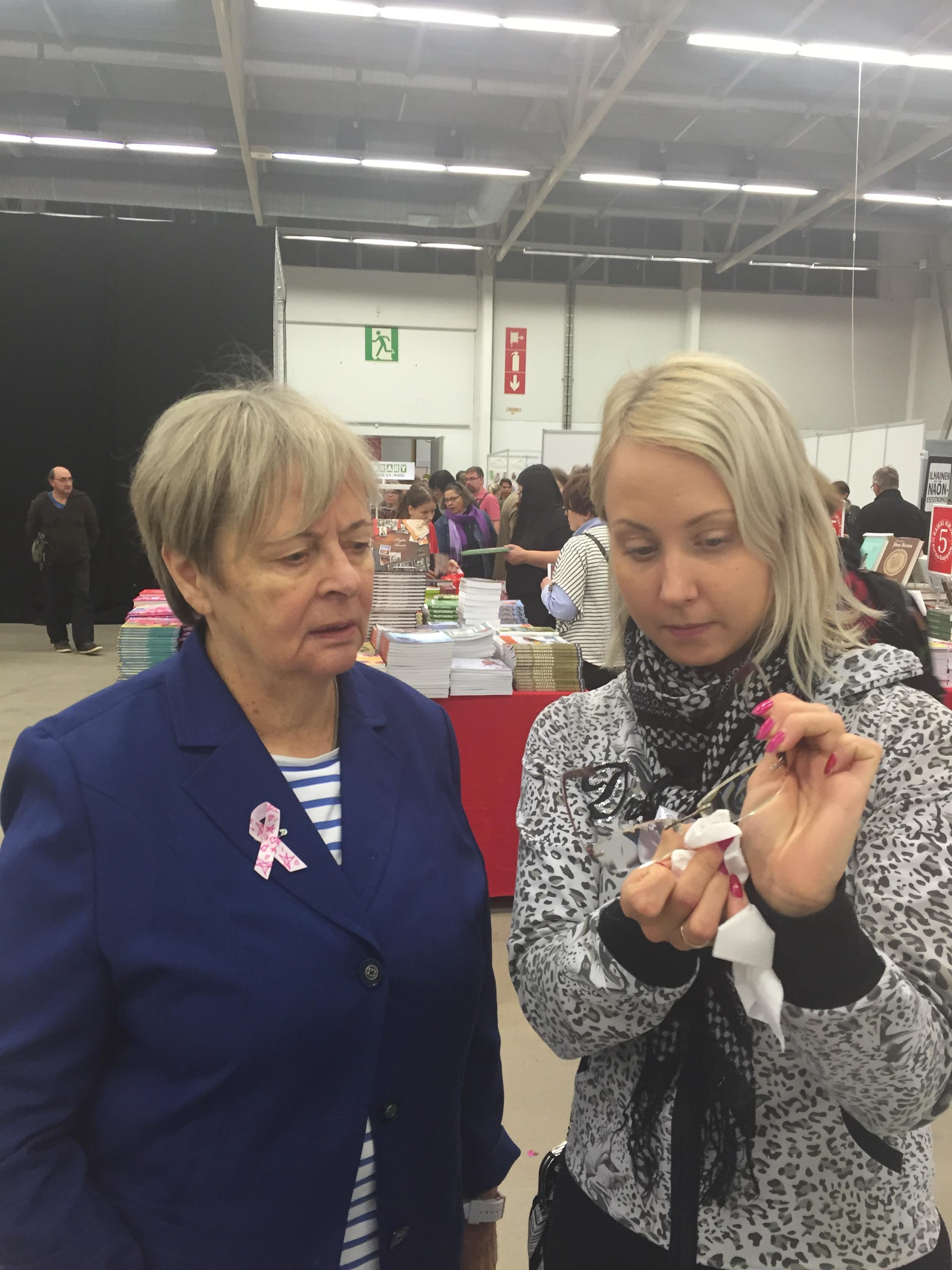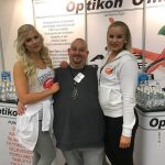 - Paavo Väyrynen ja Tarja Halonen tutustamassa Optikon Oma -tuotteisiin Keminmaan ruokamessuilla.